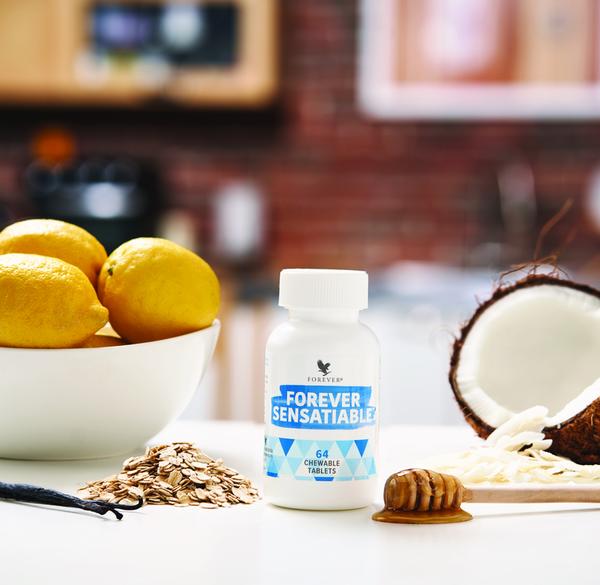A delicious, chewable tablet containing oats and yeast hydrolysate protein, Forever Sensatiable